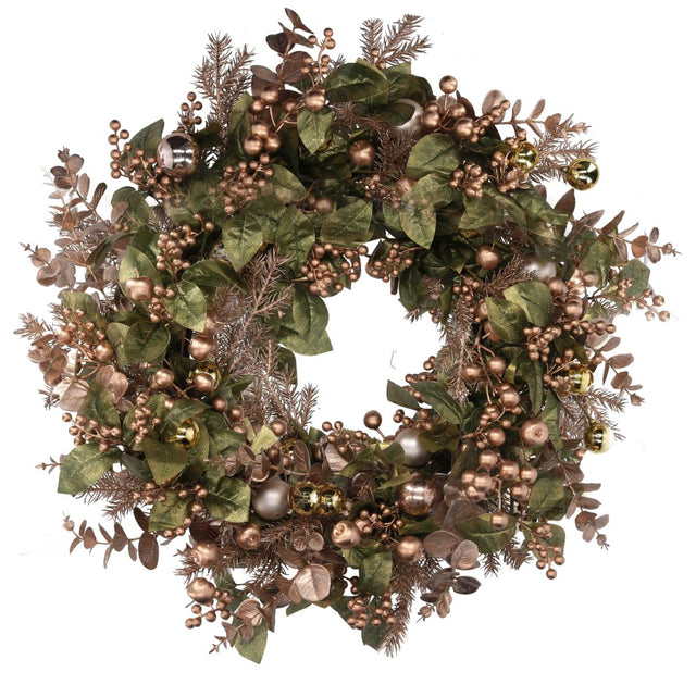 CORONCINA CON SFERE E BACCHE VERDE E ORO 55X10H