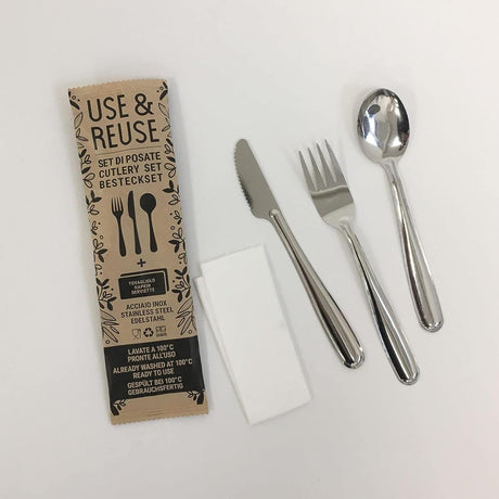 SET FORCHETTA+COLTELLO ACCIAIO INOX C/TOV.USE&REUSE 100PZ